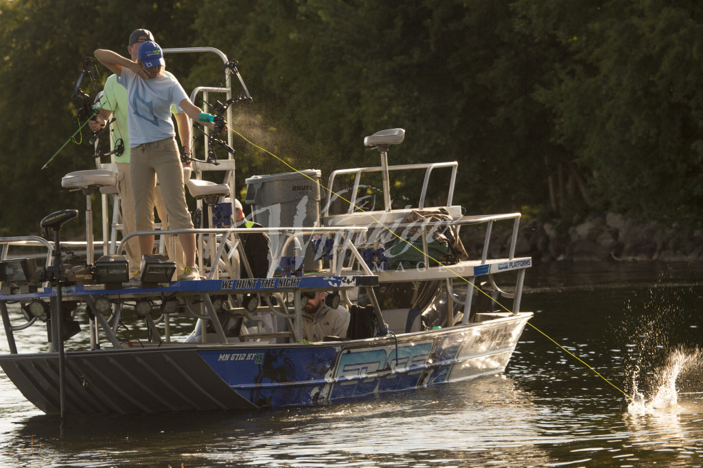 bowfishing action Diamond Bow Maddie Pennaz TRUGLO CARP FISHING MINNESOTA FOR MEDIA DIRECT AND TRUGLO Tyler Quale young couple splash arrow hitting fish splashing diamond bow