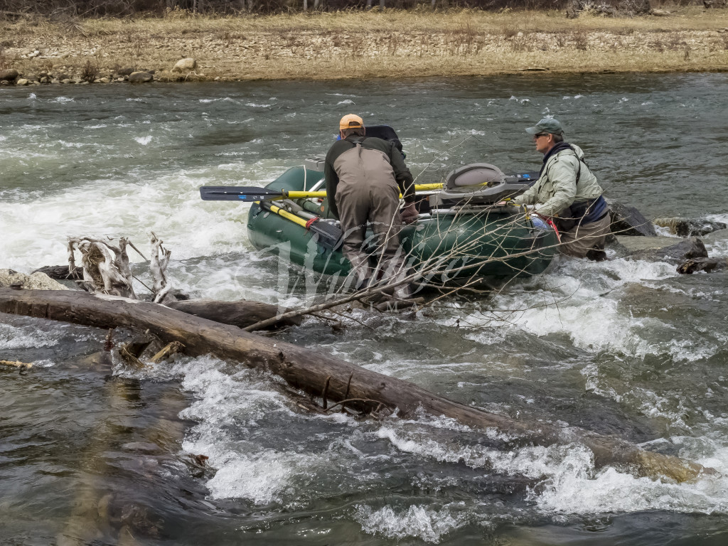 Fishing, fly fishing, Bitterroot River, MT, using a rubber raft to float into areas of the river to fish, Lon E. Lauber – WINDIGOIMAGES.COM
