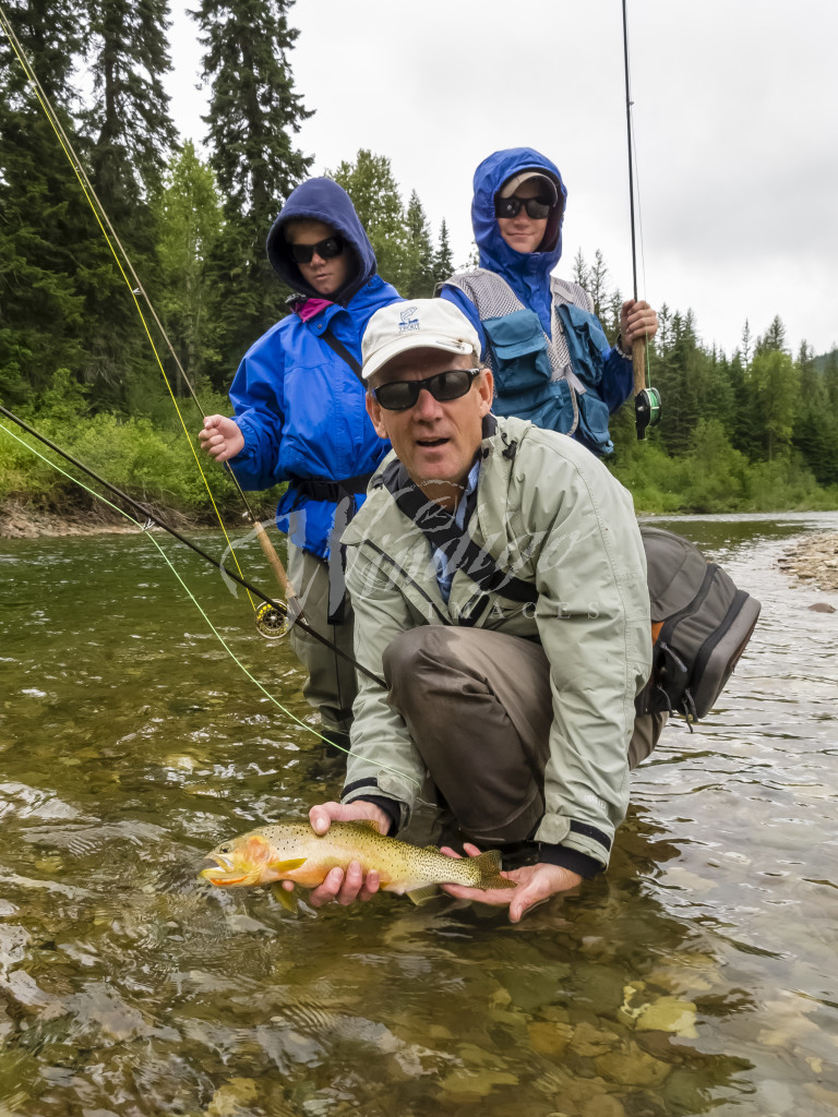 Fishing, fly fishing, river fishing for cutthroat trout, North Idaho, proudly displaying a trout, Lon E. Lauber – WINDIGOIMAGES.COM